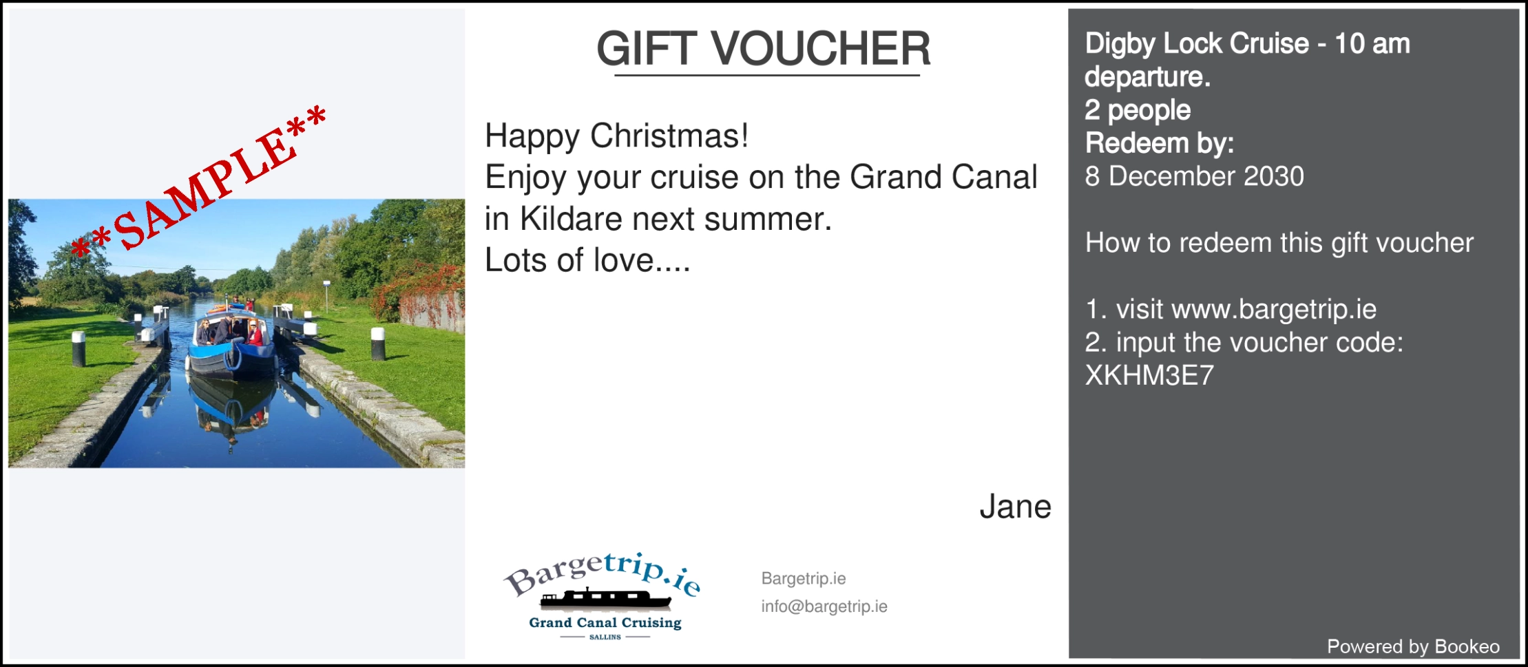 Give the gift of a serene escape with a Gift Voucher for a Barge Cruise on the Grand Canal in Kildare. Perfect for Christmas, birthdays, anniversaries, or a thoughtful surprise, this voucher lets the recipient choose their own date for a guided barge cruise on the Grand Canal in Kildare. Easy to redeem, available as an instant-delivery e-voucher, and valid for 5 years.